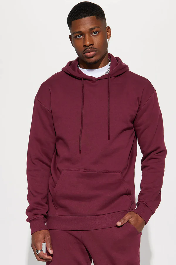 A burgundy hoodie designed with a structured fit and clean finish for dependable everyday comfort and modern casual wear.